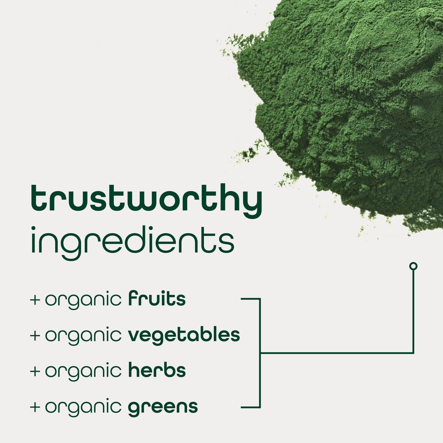 Supergreens use only USDA certified-organic ingredients to provide quality, real nutrition in every sip. Free from artificial fertilizer, pesticides, and GMOs, you’ll get the good, whole nutrients you need and none of the stuff you don’t.