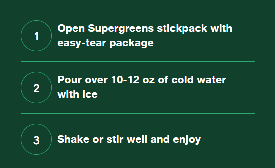 Add 1 stick pack to 10 -12oz of ice cold water, shake well, and ENJOY.